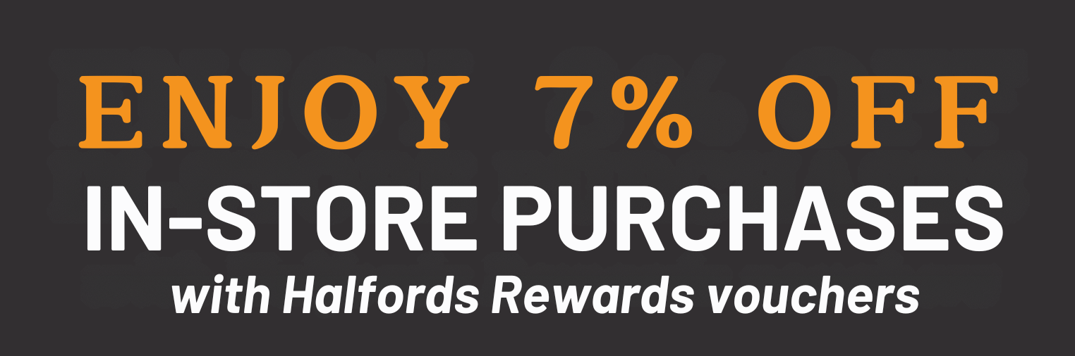 Enjoy 7% off in-store and online purchases with Halfords Rewards vouchers