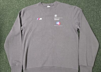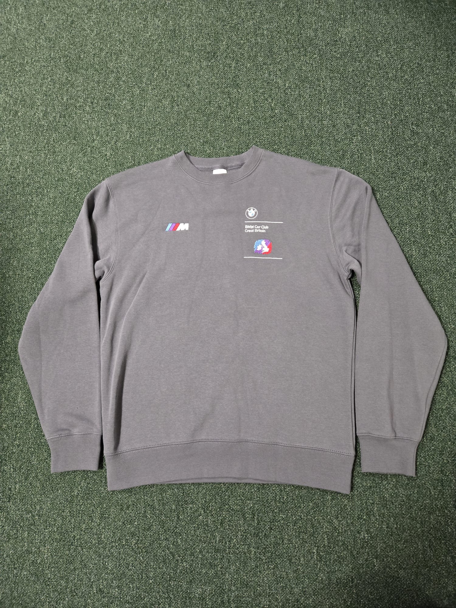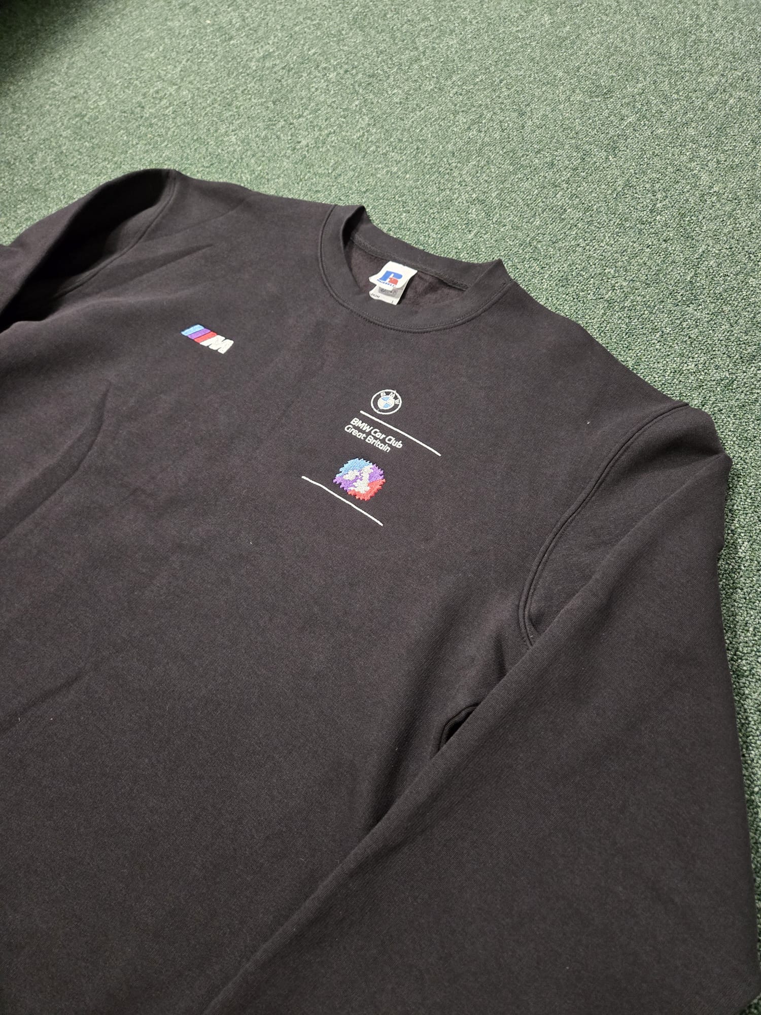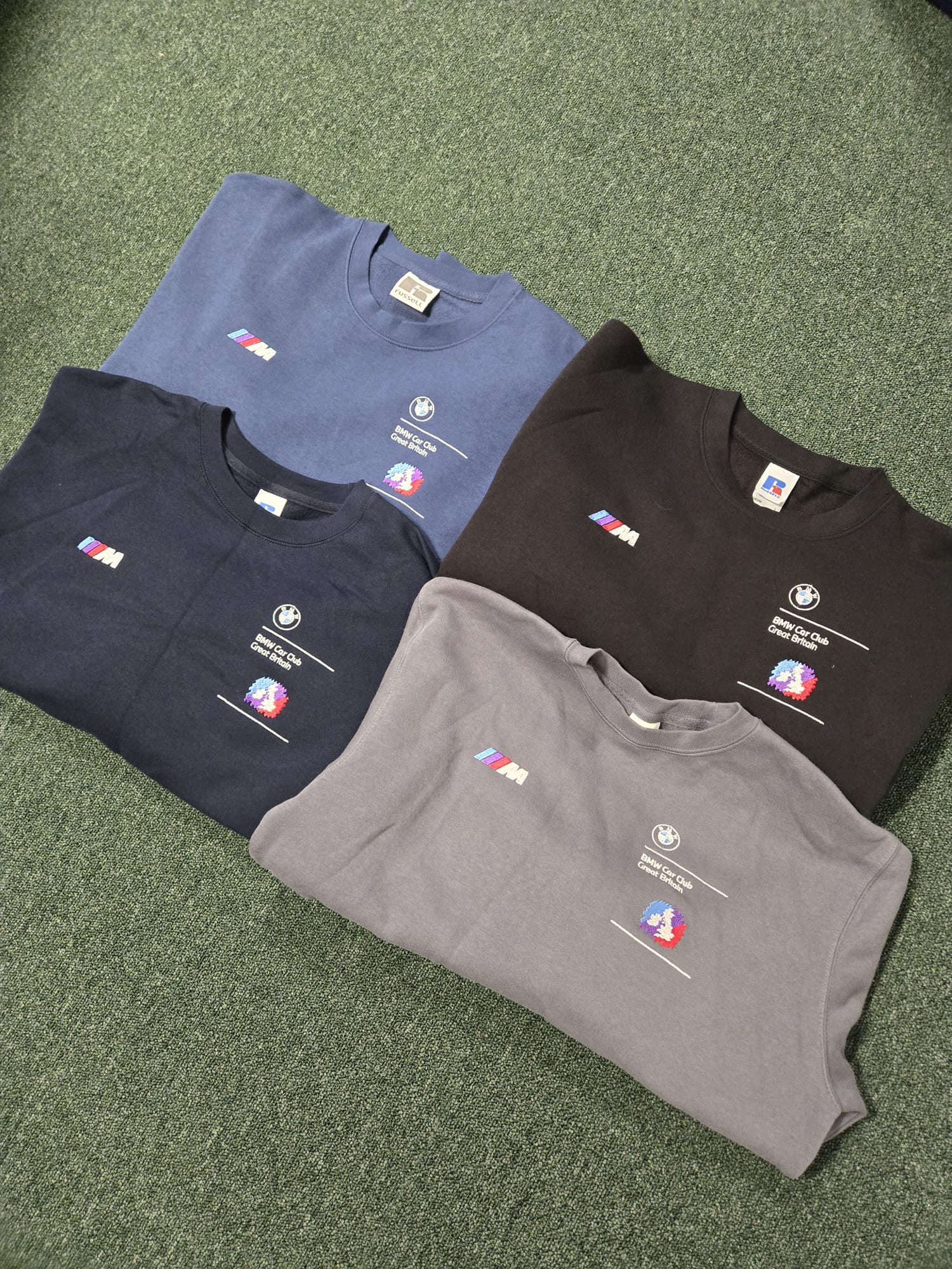Featured is our BMWCCGB branded crew neck sweatshirt. (Please Note: The Pirelli Logo has been replaced with the M Power Logo on the Right Breast and there is no Union Jack on the the back)