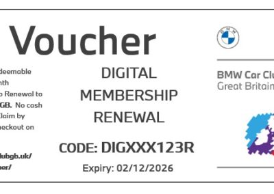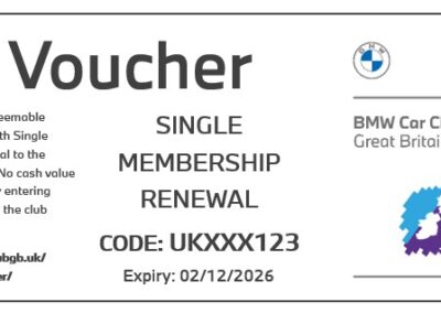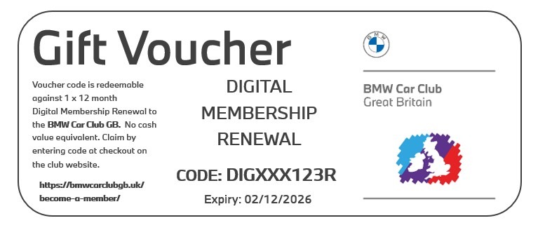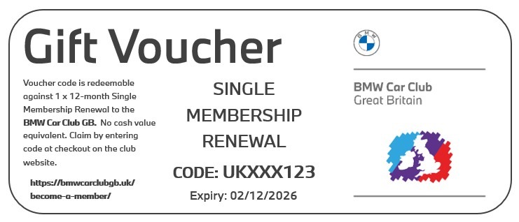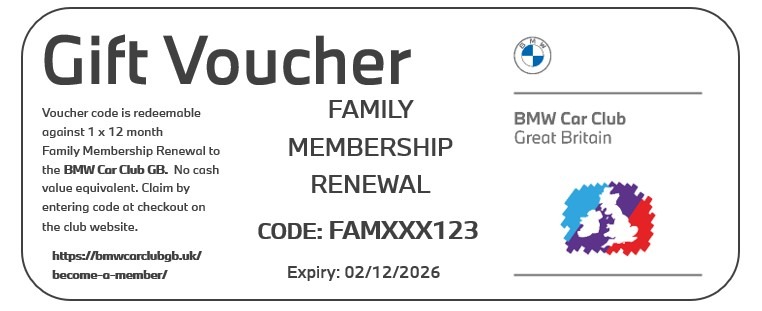 Redeemable against 1 x 12 month membership renewal to the BMW Car Club GB.