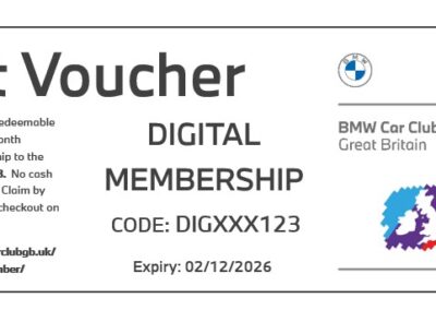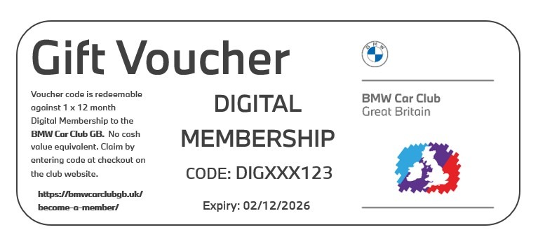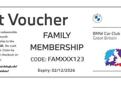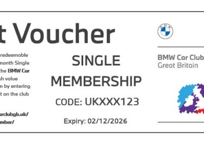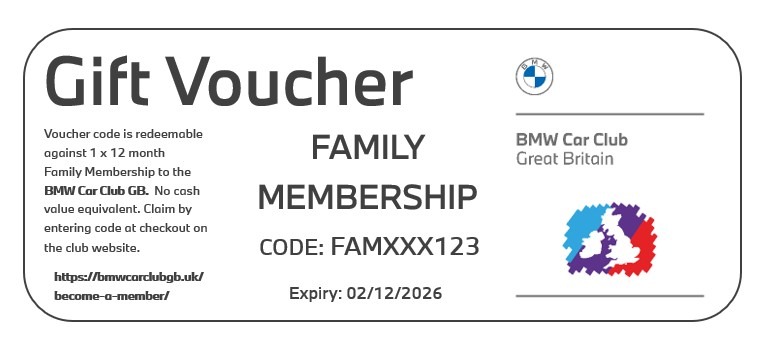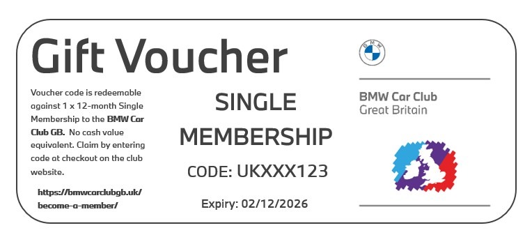 Redeemable against 1 x 12 month membership to the BMW Car Club GB.