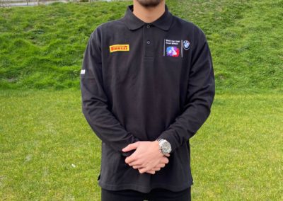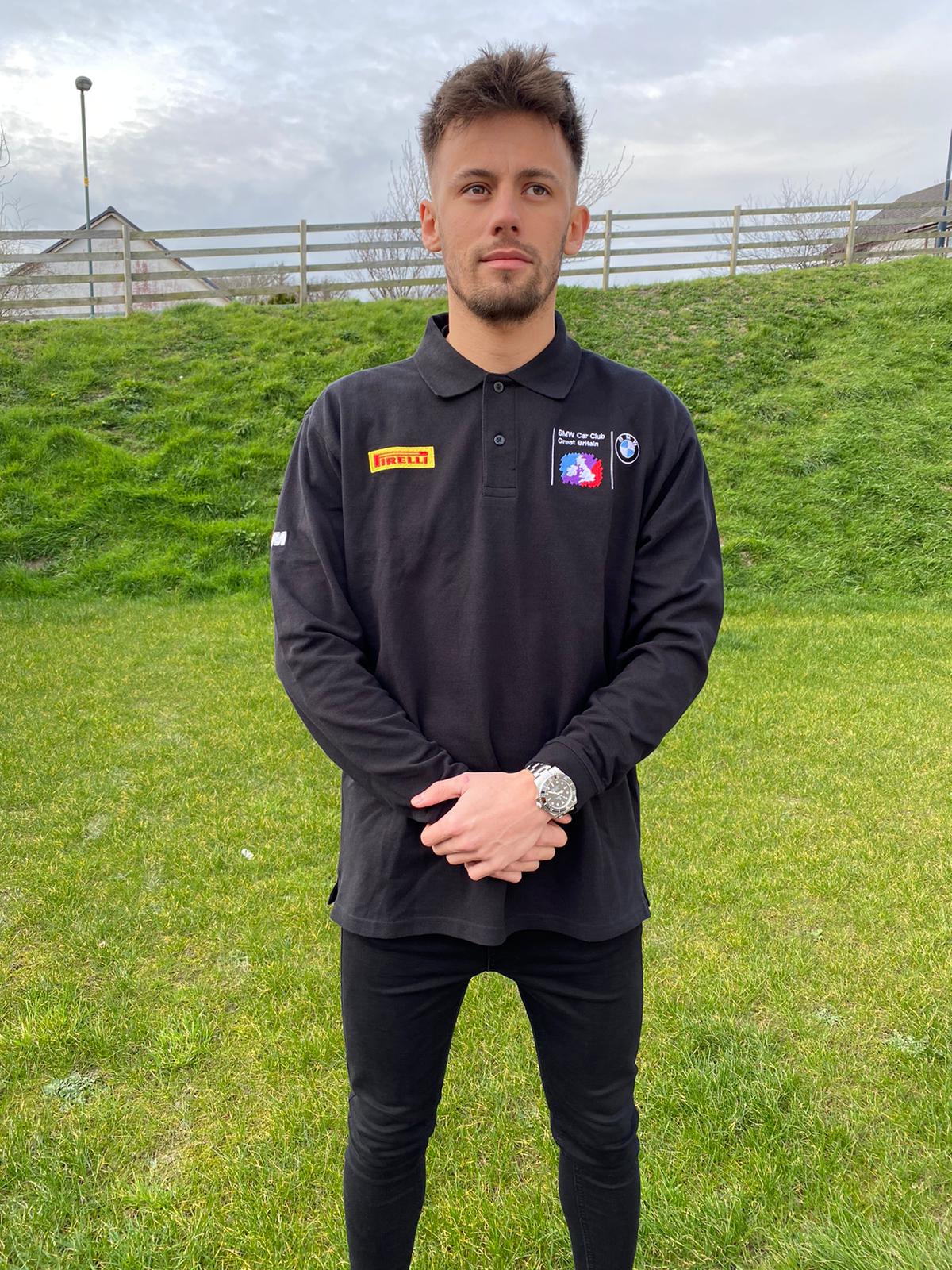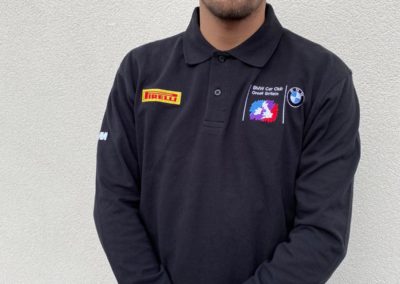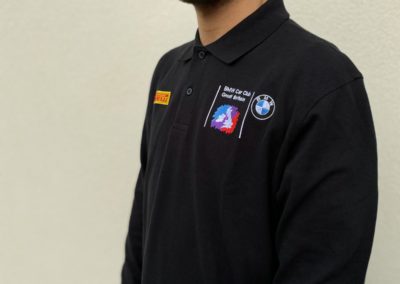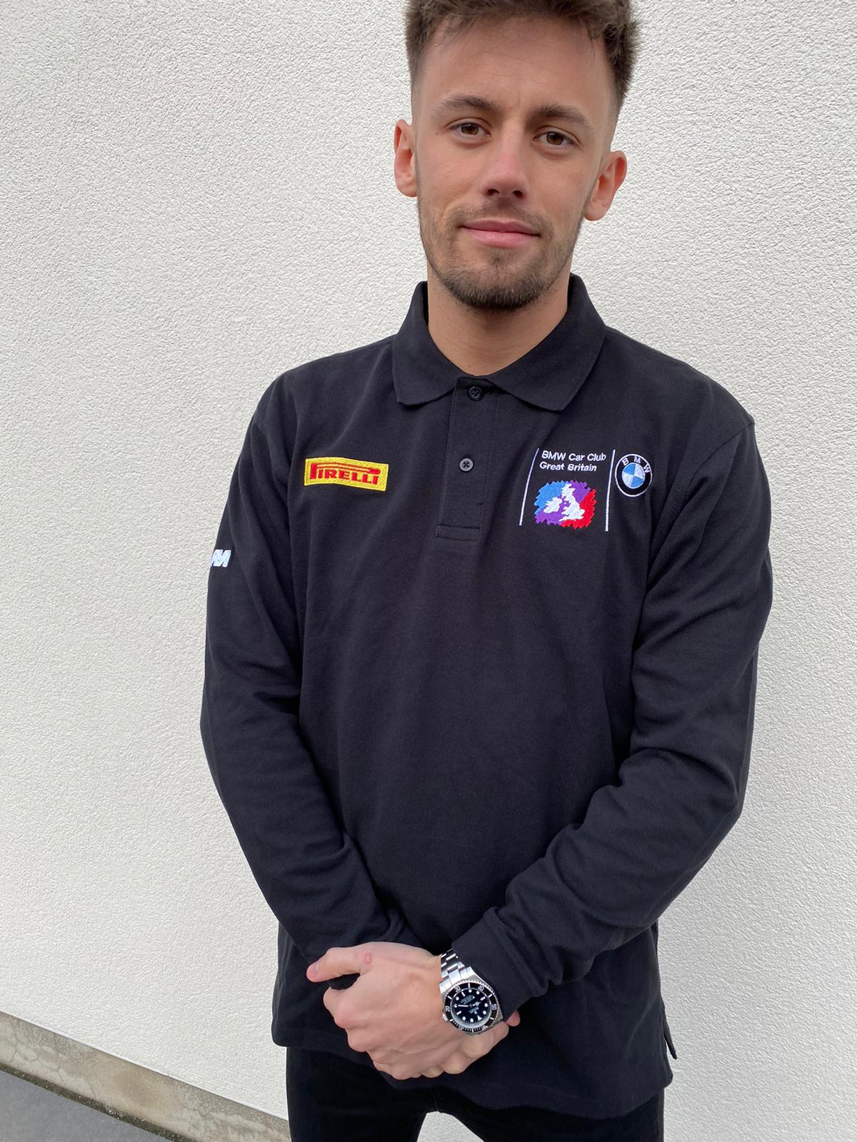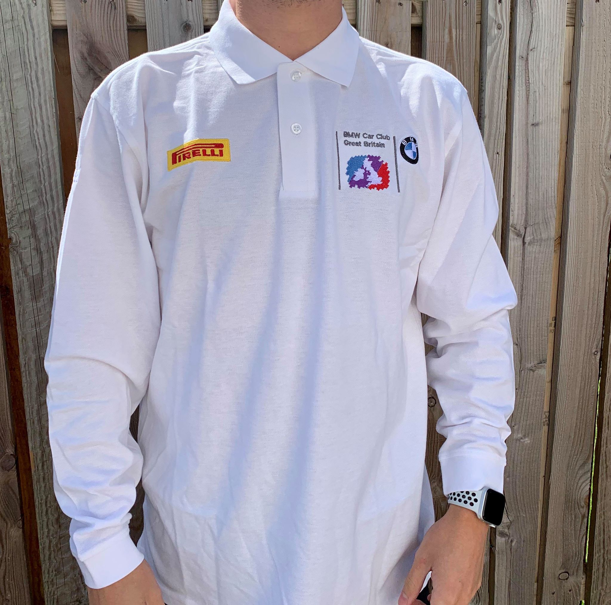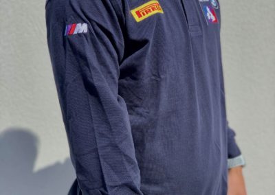 Embroidered with BMW Car Club logo on left chest, Pirelli Logo on right chest, Union Jack on the back, and M Power logo on the right sleeve.